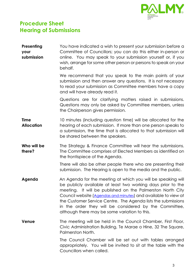 2. That the Committee note the Procedure for Hearing of Submissions, as described in the procedure sheet.