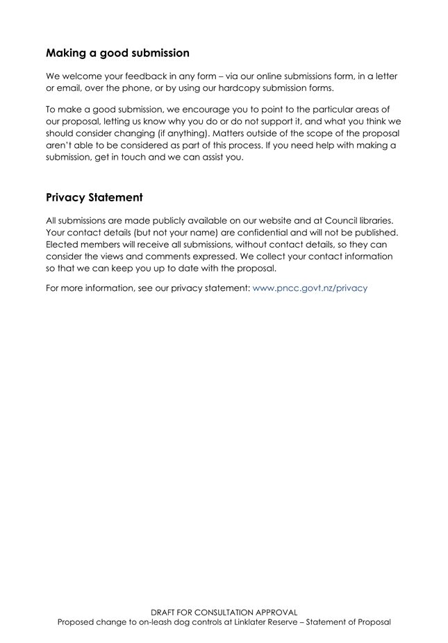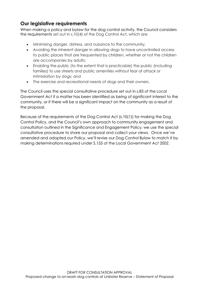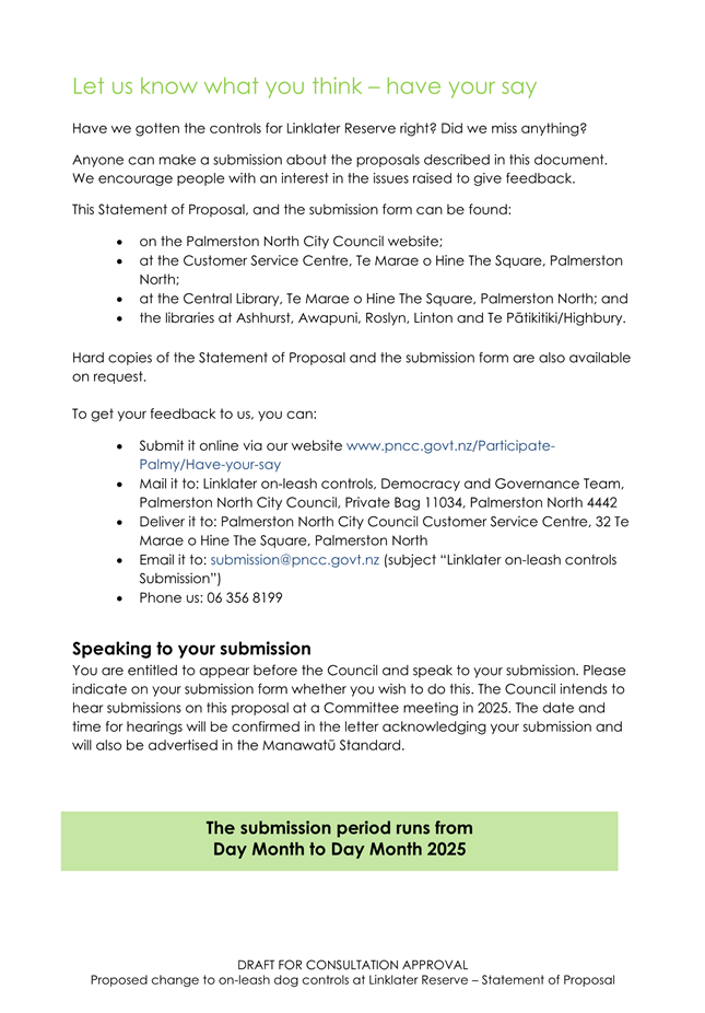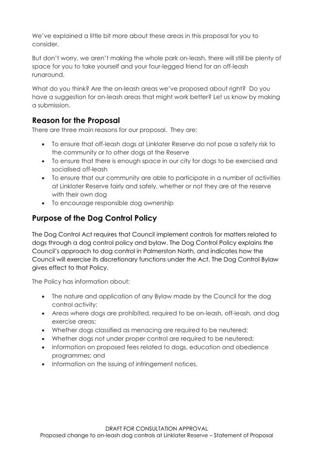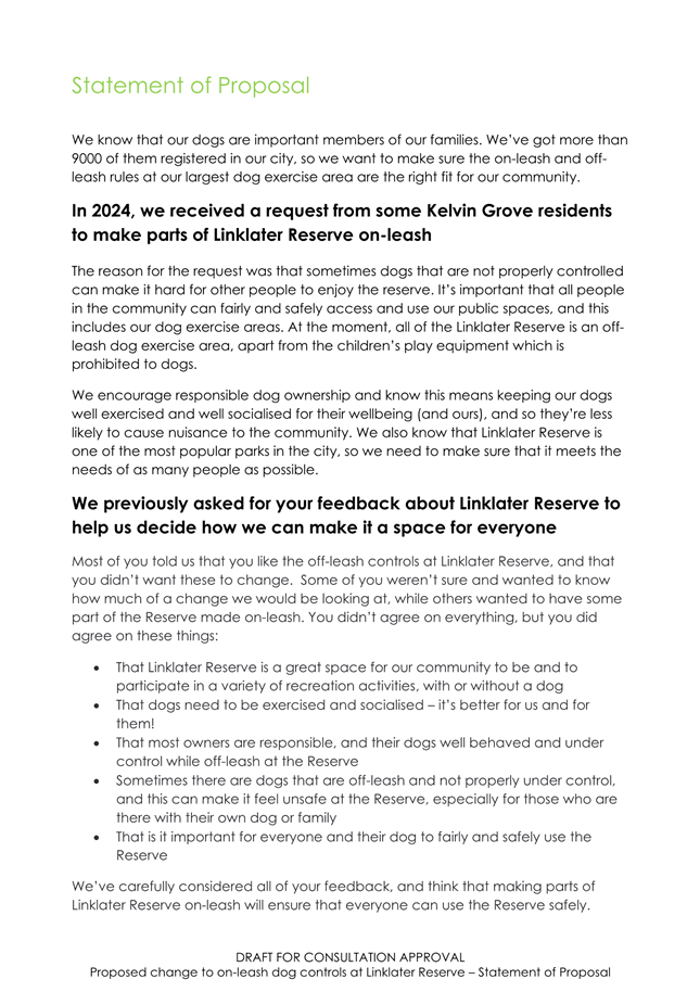 9. Petition: Designation of an on-leash dog area at Linklater Reserve Page 25