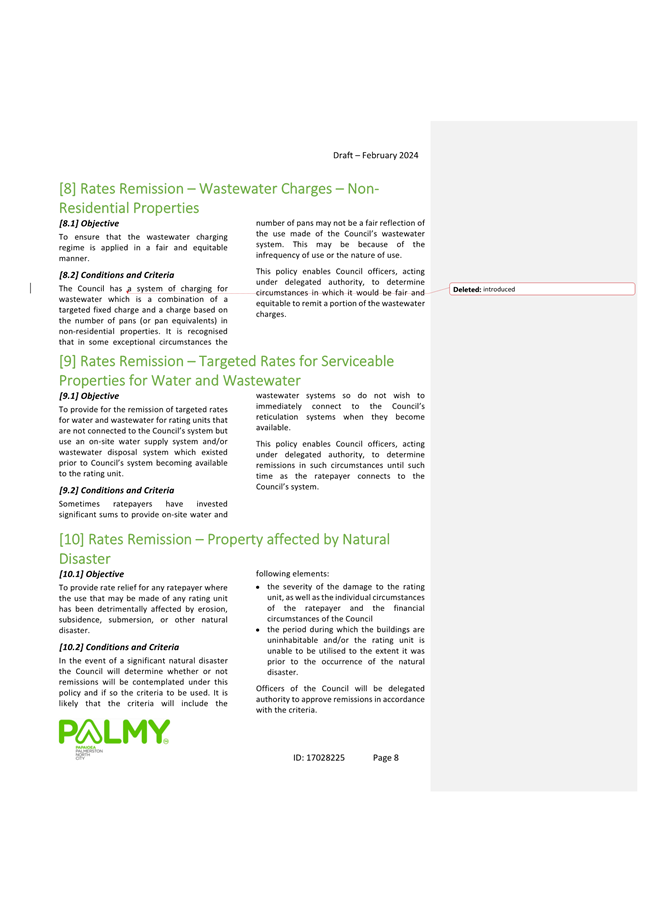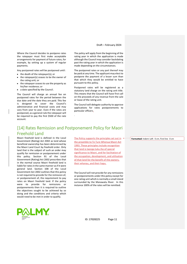 2. That Council endorse the draft: i. Mahere whare Housing plan ii. Mahere hoahoa tāone Urban design plan iii. Mahere whakawhanake ohaoha Economic development plan iv. Mahere tūnuku Transport plan v. Mahere toi me ngā taonga tuku iho Arts and heritage plan vi. Mahere rēhia Recreation and play plan vii. Mahere tautāwhi hapori Community support plan viii. Mahere Whare Puna Mātauranga City Library Plan ix. Mahere haumaru hapori, hauora hapori Community safety and health plan x. Mahere āhuarangi hurihuri, toitūtanga, Climate change and sustainability plan xi. Mahere mō te kanorau koiora me Te Awa o Manawatū Biodiversity and the Manawatū River plan xii. Mahere taumanu para Resource recovery plan xiii. Mahere wai Water plan xiv. Mahere mana urungi, kirirarautanga hihiri Governance and active citizenship plan as foundation documents of the proposed Long-Term Plan 2024-2034 (Attachment 2). |