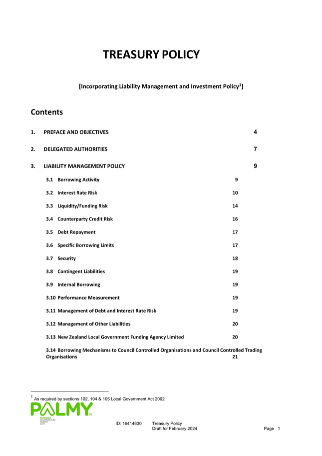 11. Treasury Policy (Including Liability Management & Investment Policy) Page 75