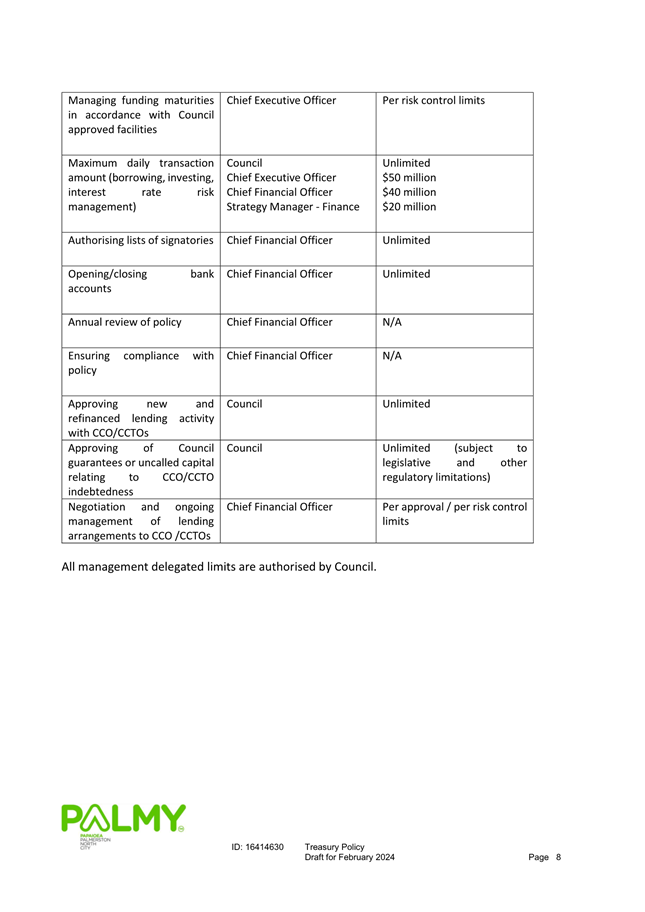 Clause 1-24 above was carried 13 votes to 0, the voting being as follows: For: The Mayor (Grant Smith) and Councillors Debi Marshall-Lobb, Mark Arnott, Brent Barrett, Rachel Bowen, Vaughan Dennison, Lew Findlay, Roly Fitzgerald, Patrick Handcock, Billy Meehan, Karen Naylor, William Wood and Kaydee Zabelin. |