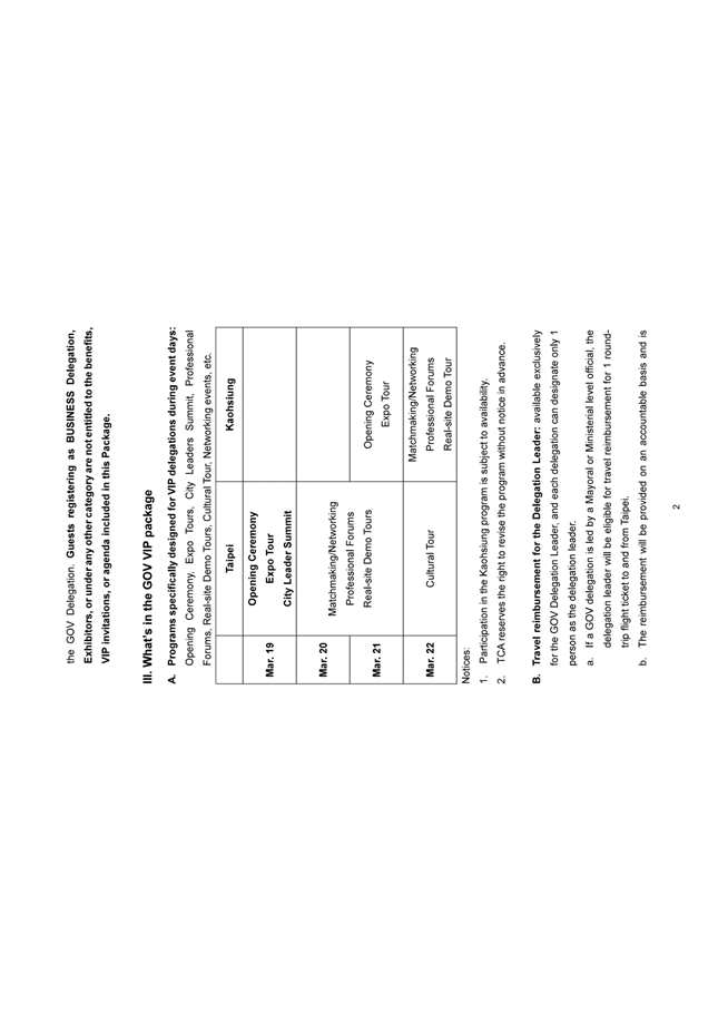 2.7 The Mayor’s leadership of the delegation would secure the financial support from the Taipei Computer Association via the complimentary government delegation VIP package, which includes: