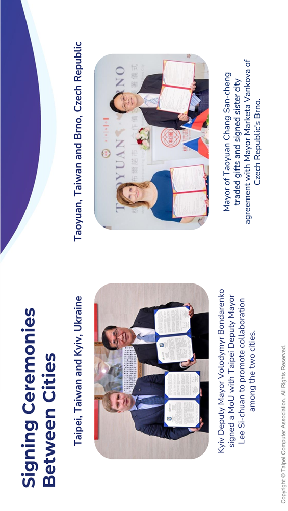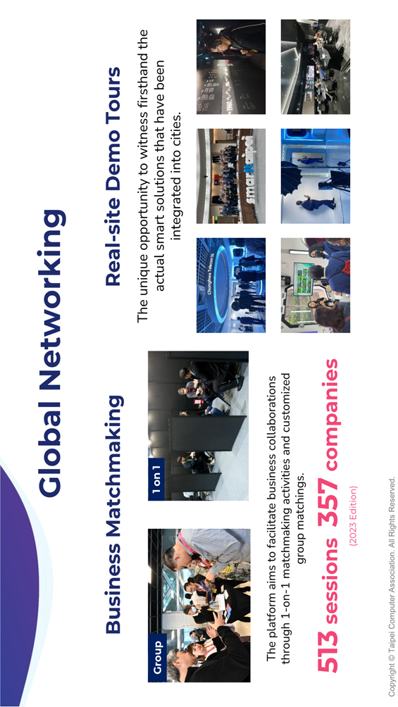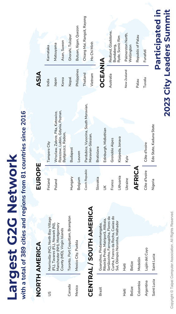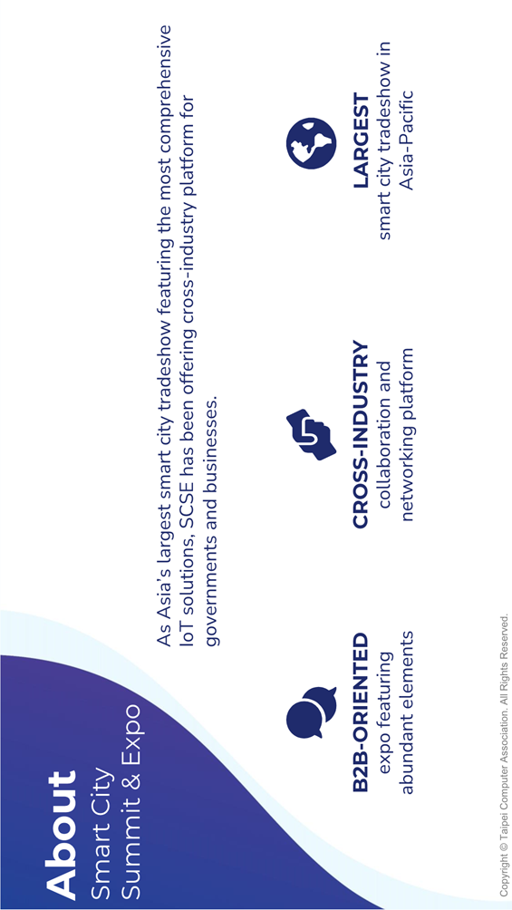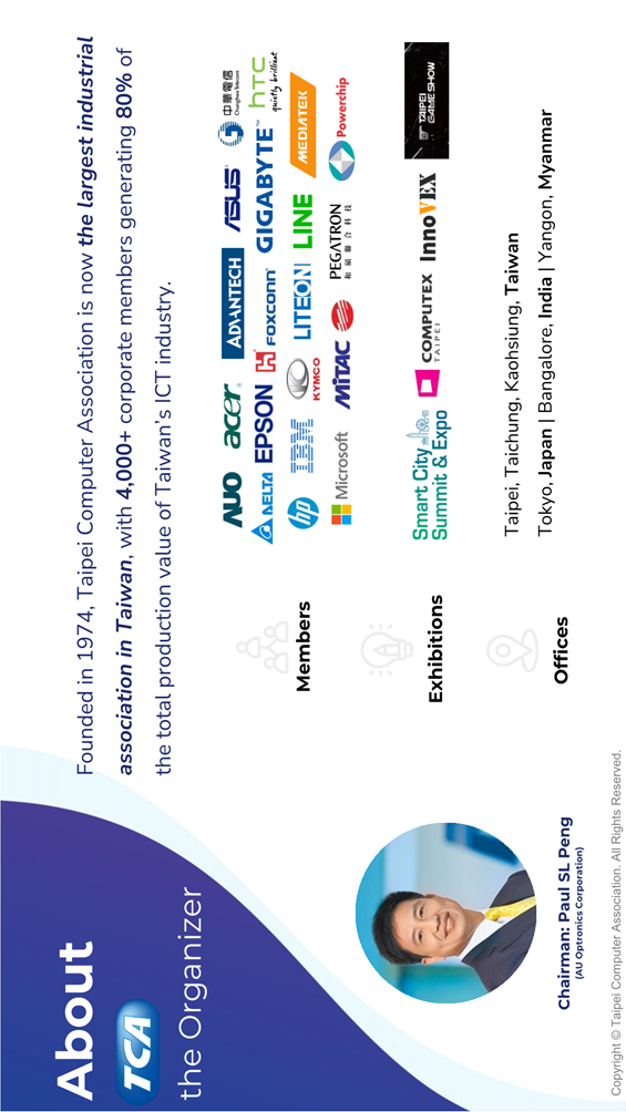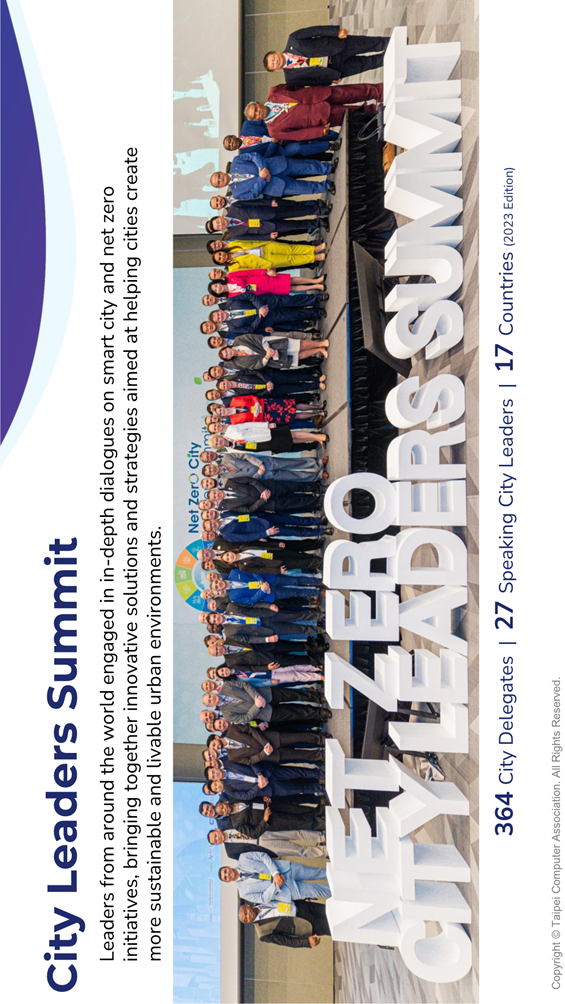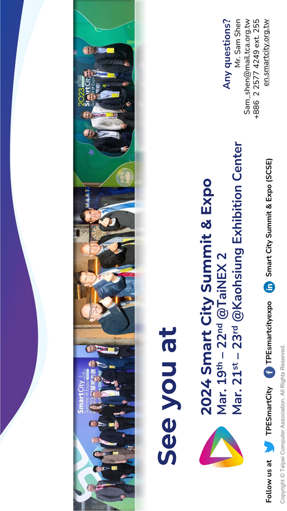 2.1 Taipei Computer Association was established in 1974 and is a leading industrial organisation in Taiwan. Since 2014, it has been facilitating the Smart City Summit and Expo, acting as a bridge to government, academic, general public and international professional bodies.