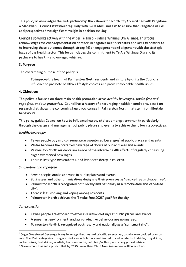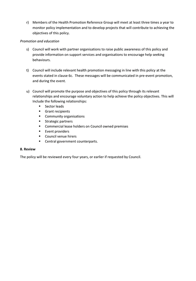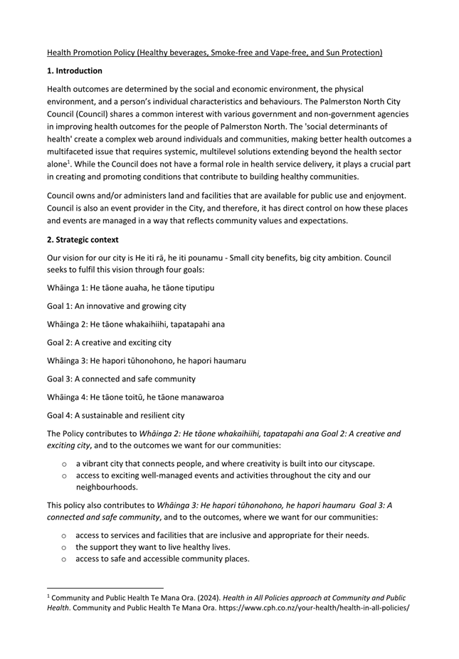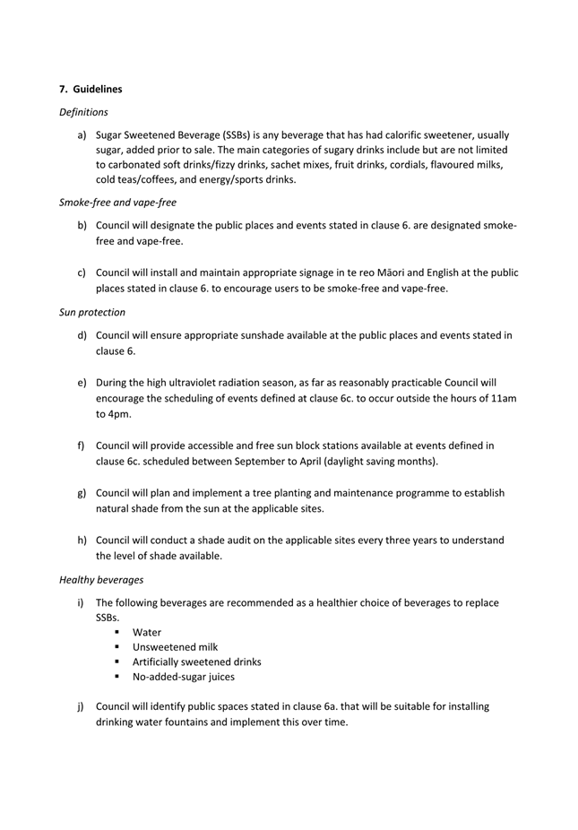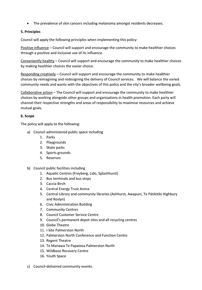 7. Approval to consult on the draft Health Promotion Policy (Healthy Beverages, Smoke-free and Vape-free, and Sun Protection). Page 21