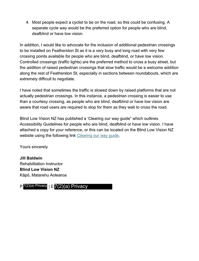 The changes implemented so far on Featherston street have provided a greater feeling of safety for those residents who move about on foot, cycle and by public bus. At the same time we’re seeing a change in motor vehicle driver behaviour, such that following these changes this section of the street feels safer on foot and on bicycle, and drivers of motor vehicles are travelling slower and less aggressively. We need to keep in mind that Featherston Street has been the most dangerous for all street users over the last decade with 442 accidents and two fatalities. Our opinion is that the design changes made will see a complete reversal of these staggering statistics over the coming decade.