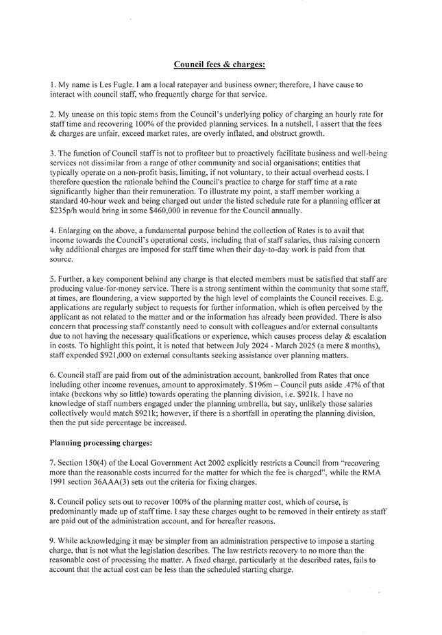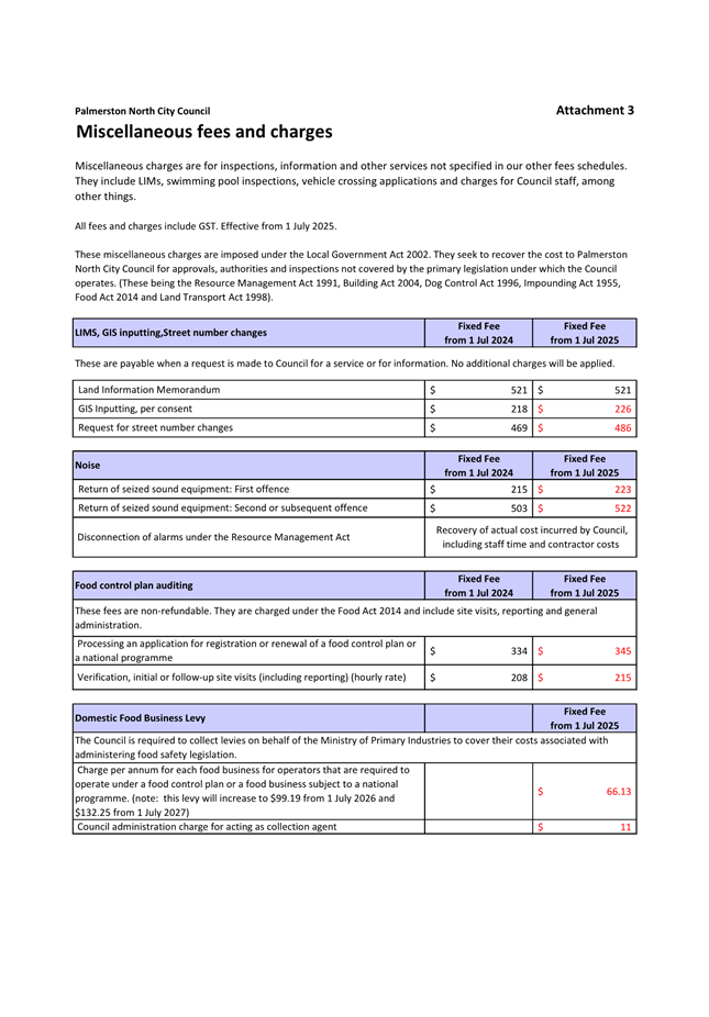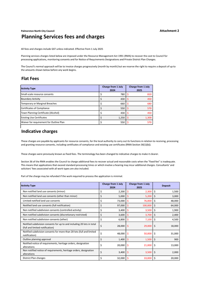 10. Fees and Charges - Confirmation following consultation Page 43