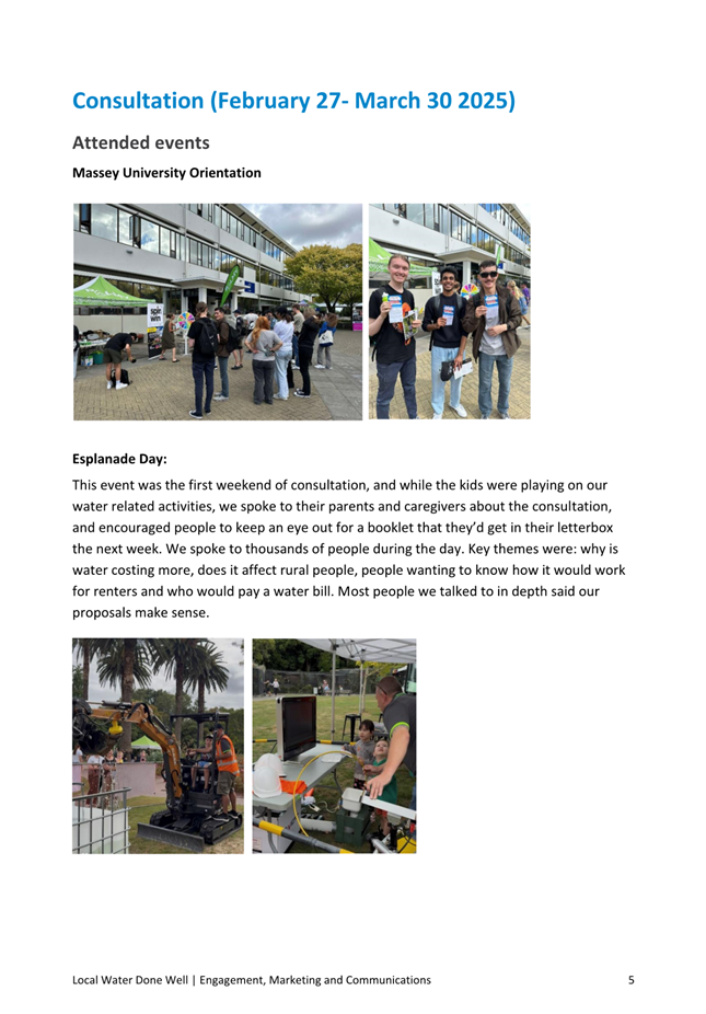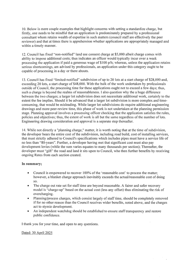 5.1 Council hearings of the submissions were held on 30 April 2025. There were five submitters who wished to be heard. Two of these submitters subsequently indicated that were not attending the hearings. A few other Annual Plan submitters referred to the project itself around affordability and the need for the external funding.