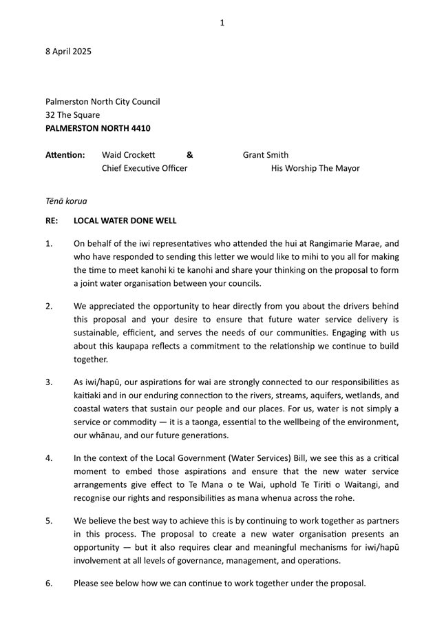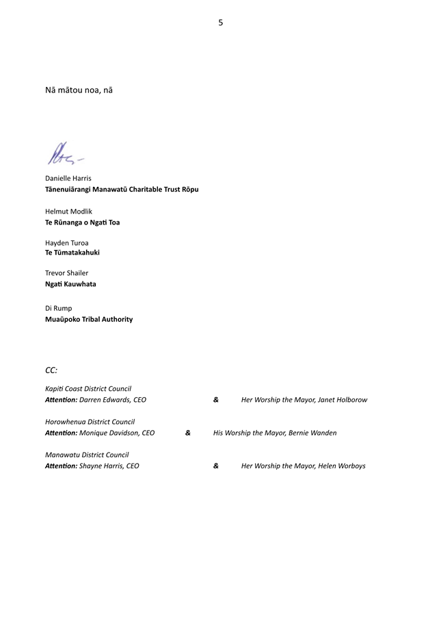 5.4 Peter Butler emphasised that the governance of the site should be iwi led and therefore should be fully governed by Rangitāne o Manawatū. After questions he agreed that the actual operations of the Te Motu o Poutoa civic marae and cultural centre should be jointly governed.