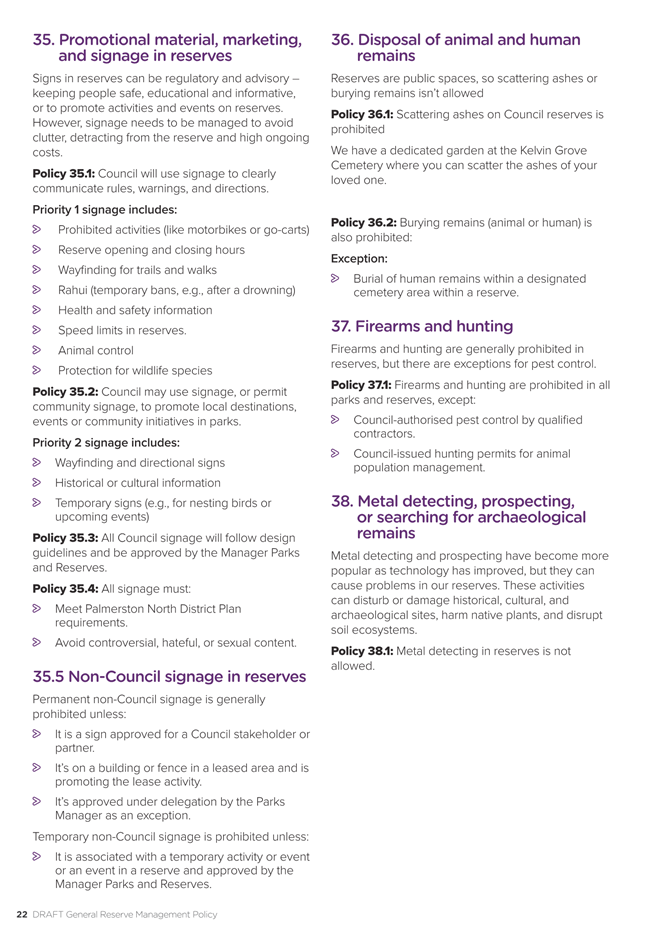 Moved Rachel Bowen, seconded Billy Meehan. The COMMITTEE RESOLVED 1. That the Committee receive the summary titled ‘Ashhurst Domain Reserve Management Plan Review - Summary of Submissions”, presented to the Culture & Sport Committee on 26 March 2025. 2. That the Committee receive the submissions and hear submissions from presenters who indicated their wish to be heard in support of their submission. 3. That the Committee note the Procedure for Hearing of Submissions, as described in the procedure sheet. |