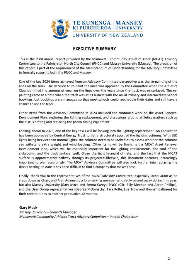 TITLE: Manawatu Community Athletics Track - Annual Report for 2024