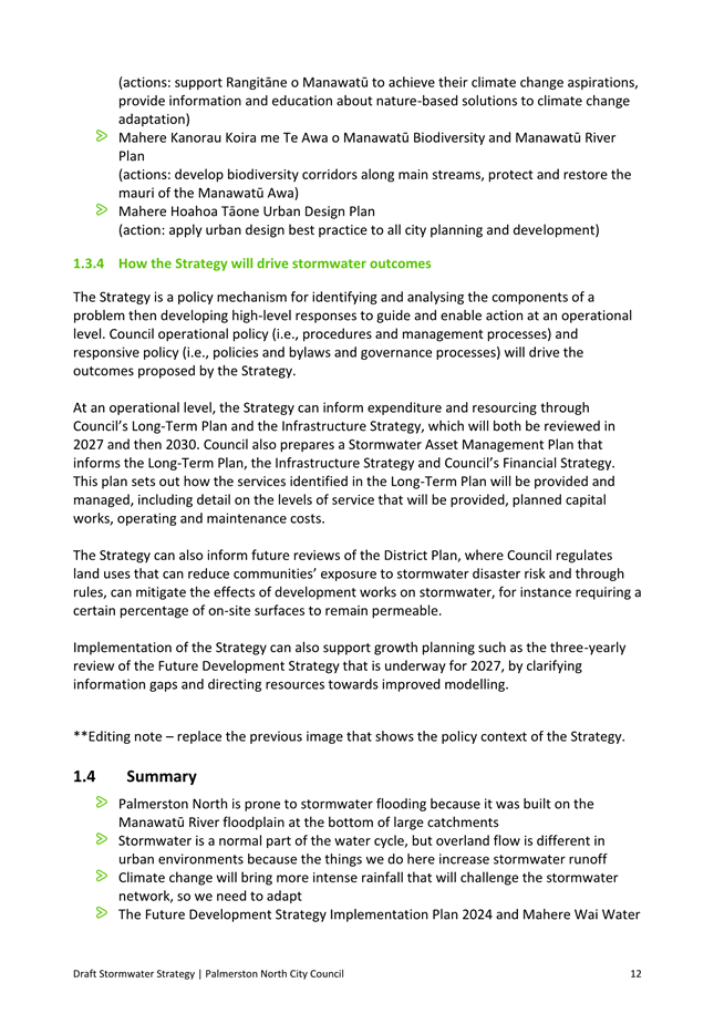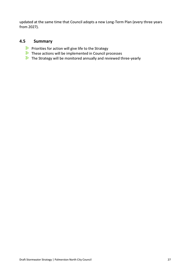 2.7 That said, some of this data may still be useful for providing context or telling the wider story – particularly when highlighting the work of other organisations through the stories in the review. We suggest treating these indicators in this way, rather than using them as key indicators in the review. For example, Horizons State of the Environment Report could be a story within the 2026 Sustainability Review. The report is released every five years but the data set that includes our city also includes Feilding, Woodville, Pahiatua, Eketahuna and Foxton.