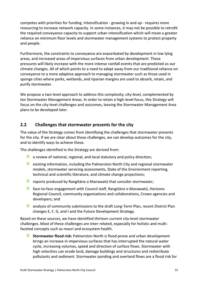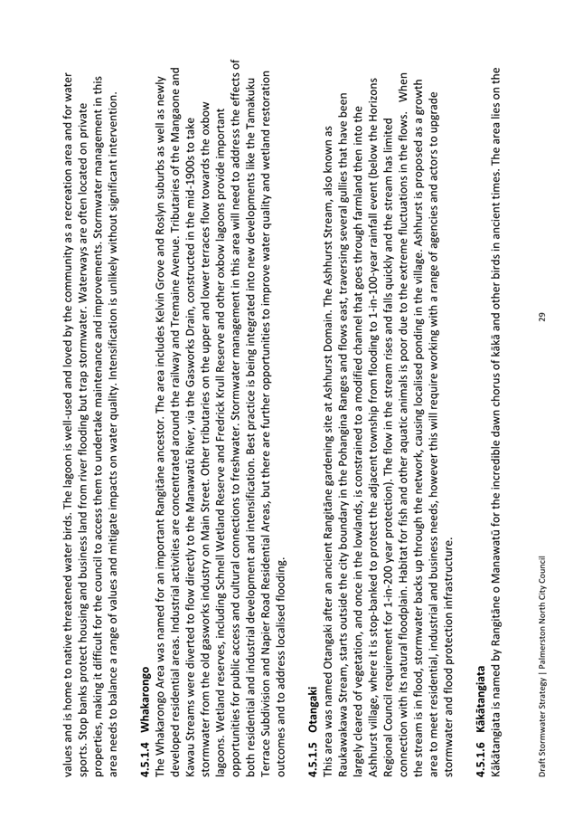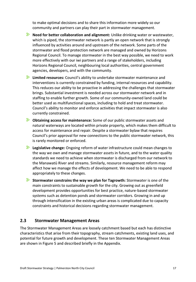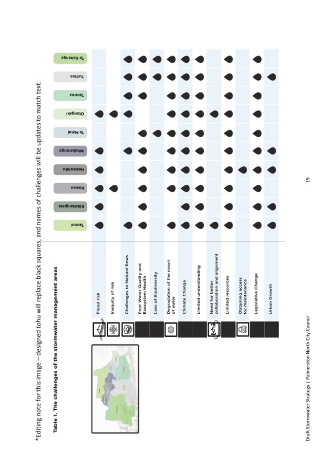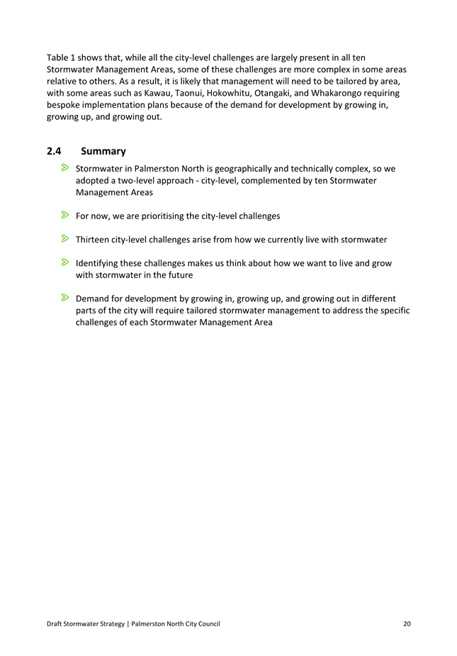· Snapshot in time, likely to vary considerably from one report to next. Scope of these catchments considerably larger than Palmerston North City Council boundary |
