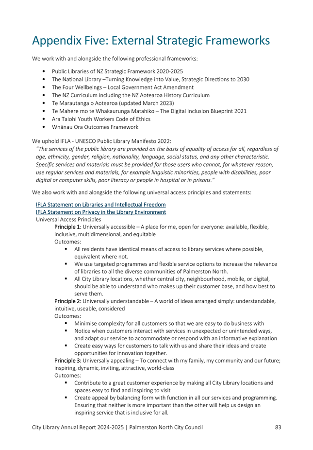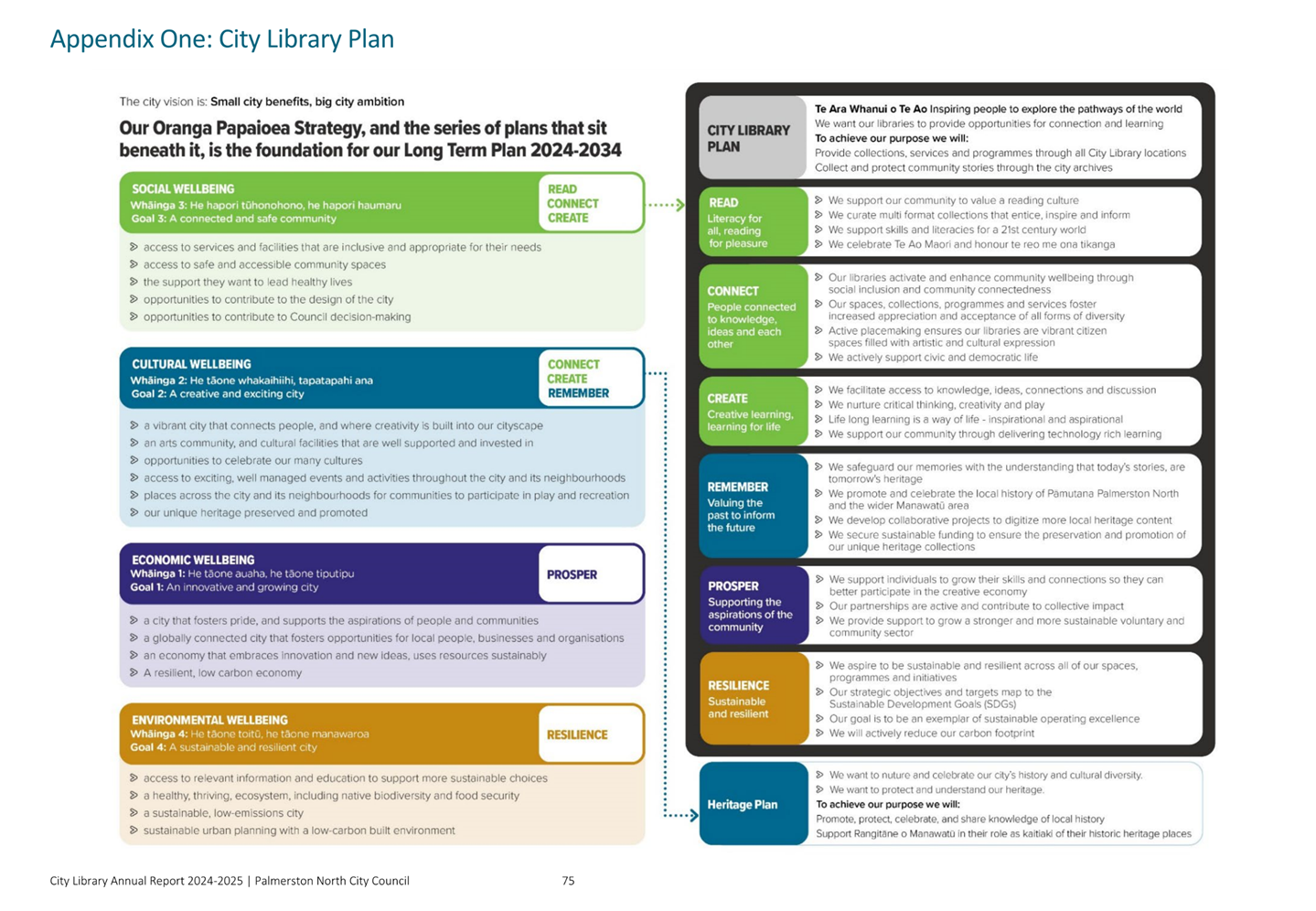 The recommendations contribute to this plan: 8. Mahere Whare Puna Mātauranga 8. City Library Plan The action is: Provide city libraries that connect, curate and provide access to knowledge, ideas and works of the imagination that are primarily focused on meeting the needs of communities with the greatest needs and changing needs of communities. Provide library programmes that support the development of literacy in all forms. |