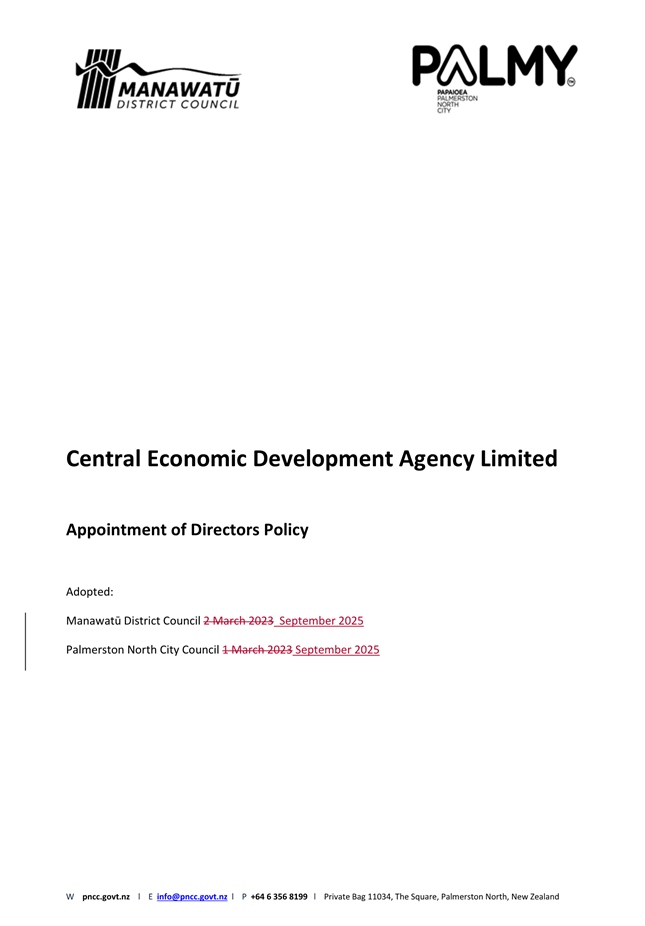 Review of PNCC Appointment of Directors Policy.