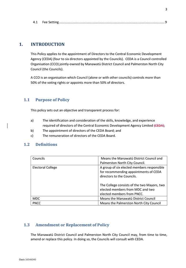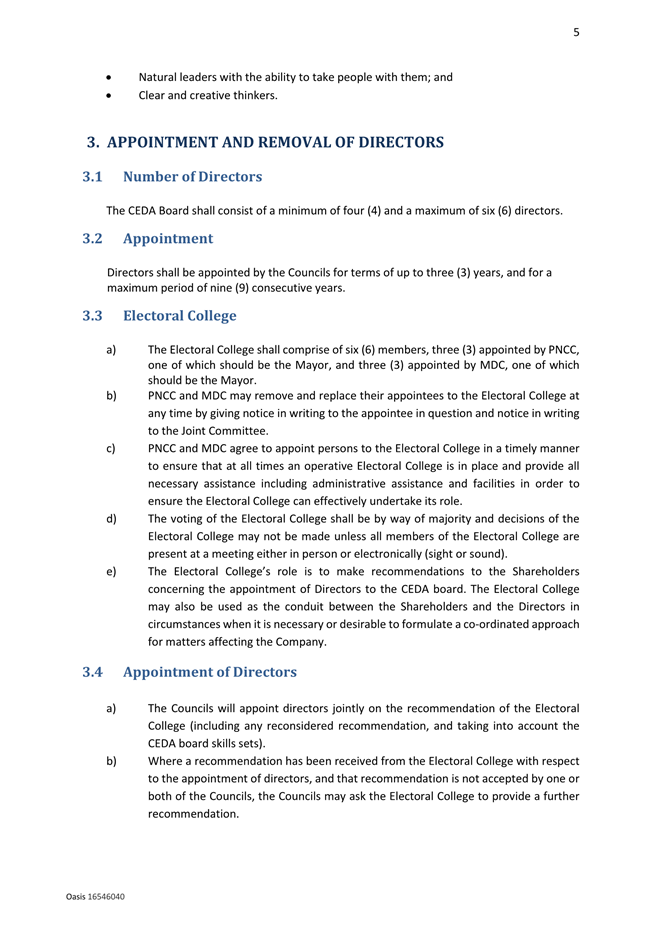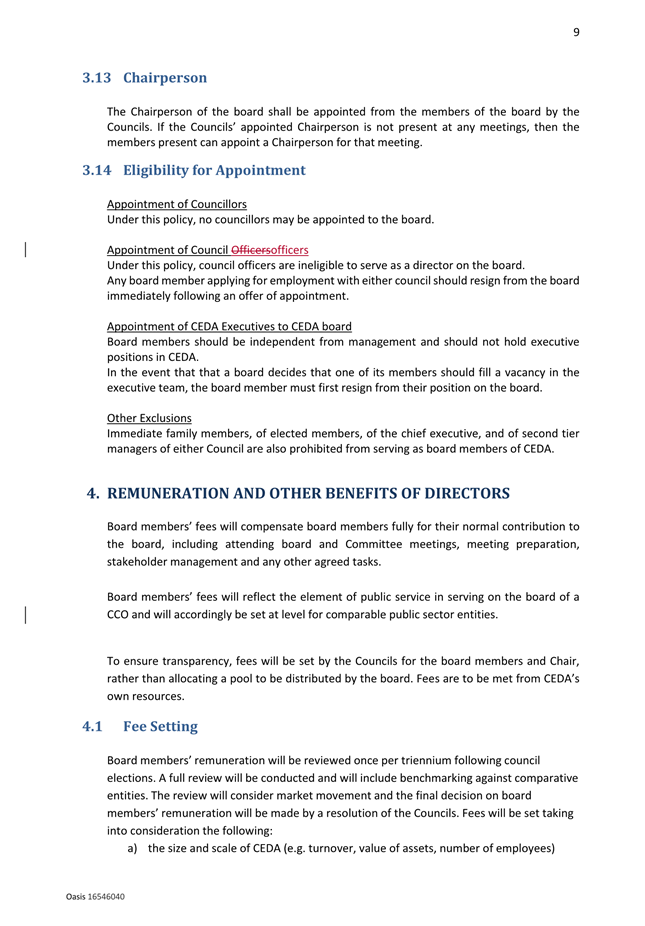 14. Review of the Central Economic Development Agency (CEDA) Appointment of Directors Policy. Page 51