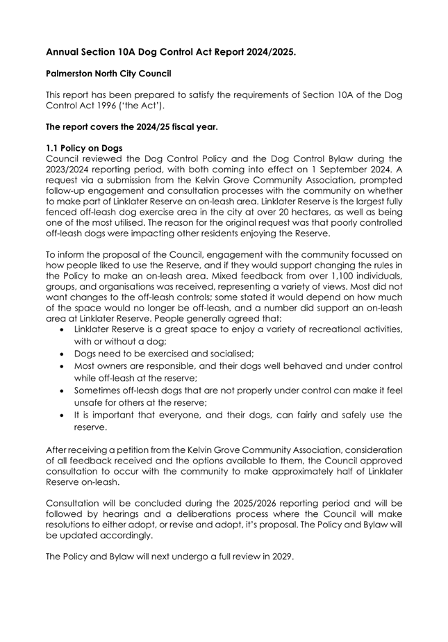 1.1 This report has been prepared to satisfy the requirements of Section 10A of the Dog Control Act 1996 (‘the Act’).