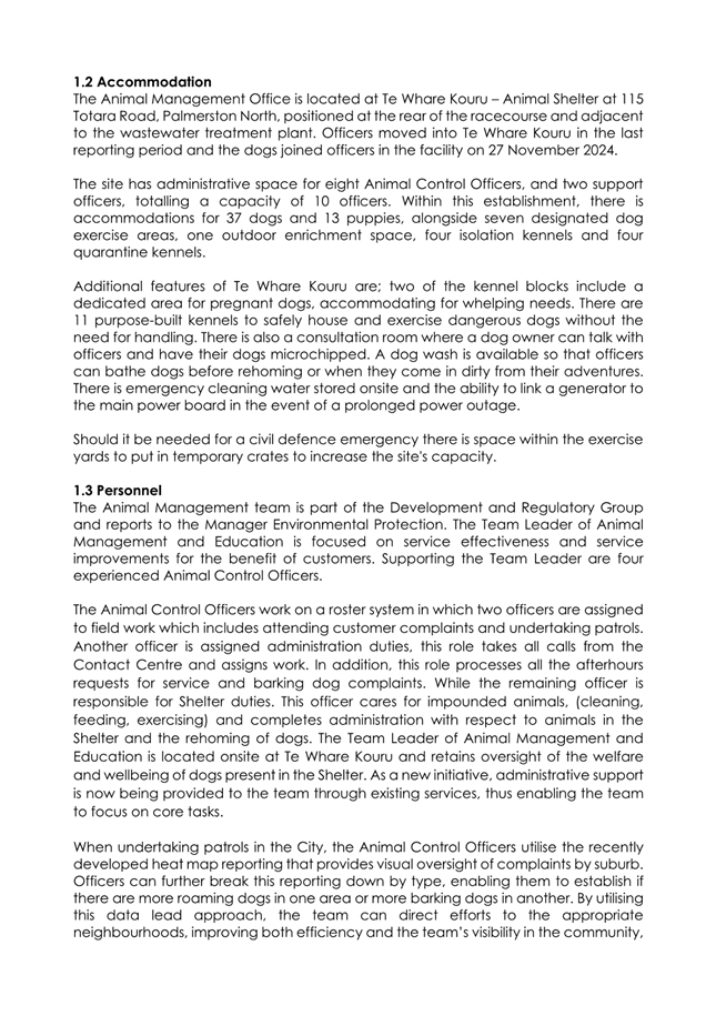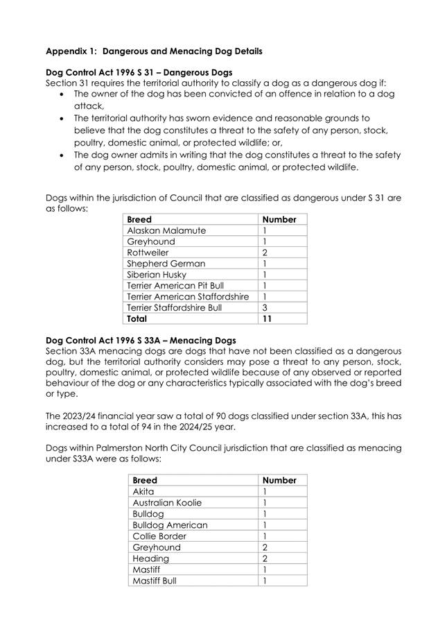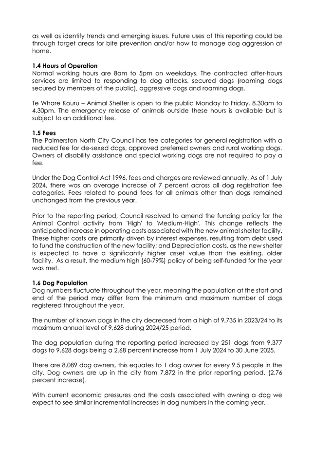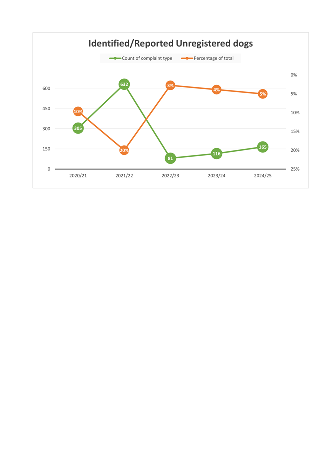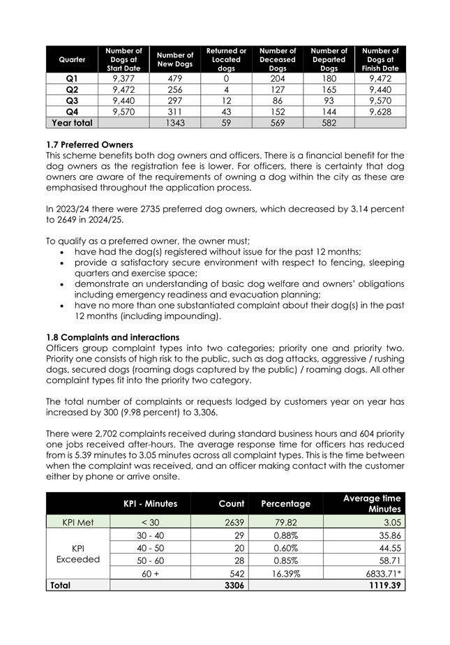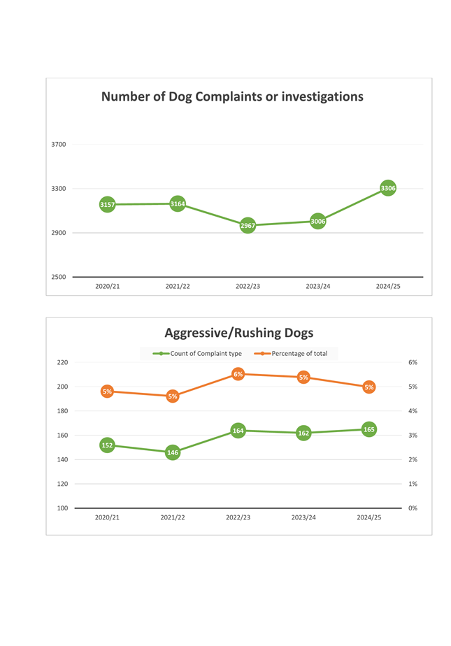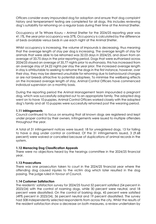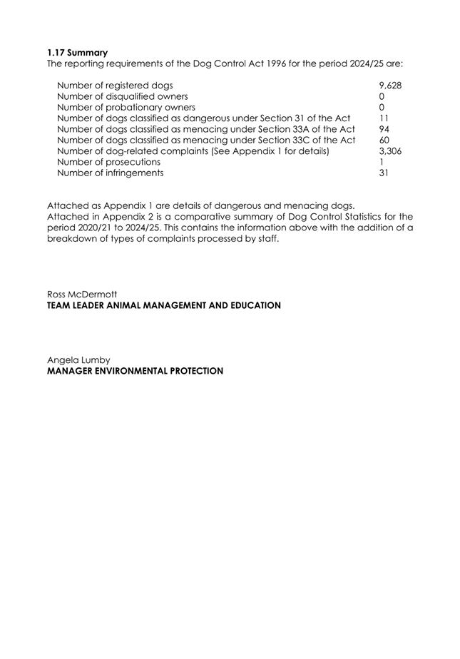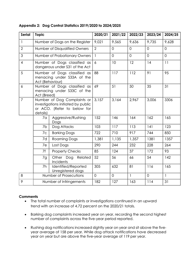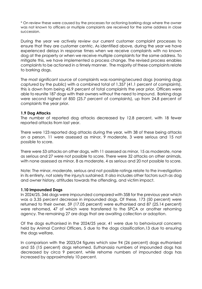 1.4 The attached report on the Council’s administration of its Dog Control Policy and Practices for 2024/25 has the following highlights: